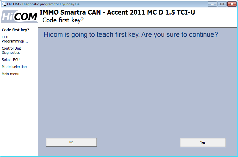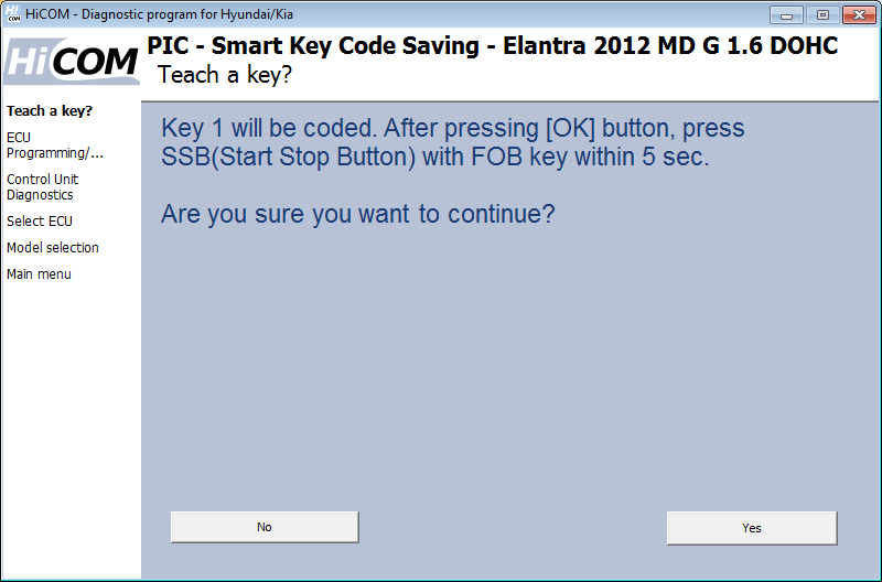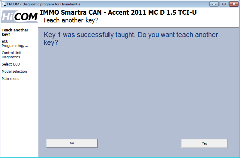 Se le preguntará si desea codificar otra clave. Si hace clic en "sí", HiCOM le pedirá que inserte la siguiente clave. Se pueden codificar hasta 4 llaves (algunas unidades de control permiten unidades de hasta 8 llaves). Si hace clic en "No", el proceso de codificación finaliza y no se agregan más claves.