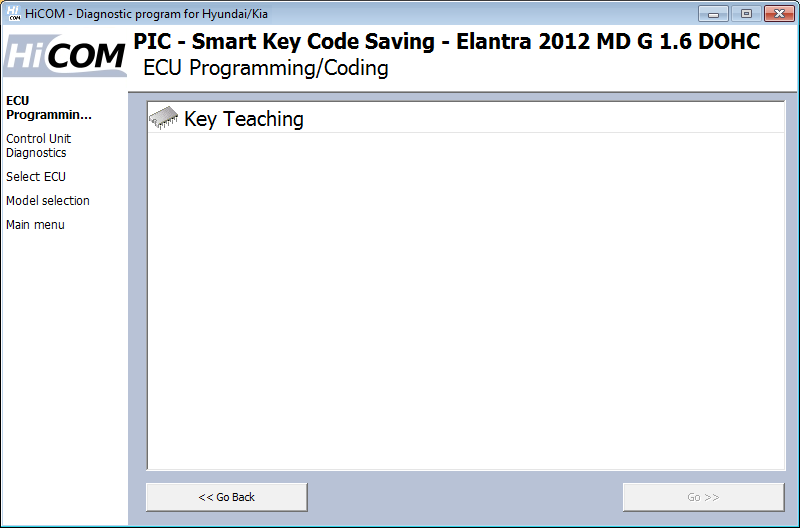 Seleccione la función "Enseñanza de claves" en el menú "Programación/Codificación de ECU".